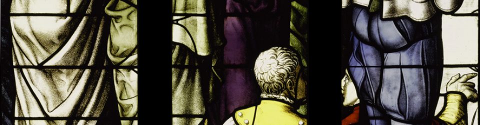 Niet voor niets zien we Jezus op het glas in een purperkleurige mantel. Purper is de kleur van het lijden. Zo diep was Jezus’ liefde, zo ver ging Hij om het werk van zijn Vader te doen, dat Hij het verschrikkelijkste lijden aantrok en zich uiteindelijk gaf tot in de dood. Én opstond uit de dood. En daarin, in zijn kruis en opstanding, ligt onze redding besloten.